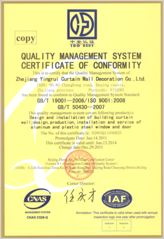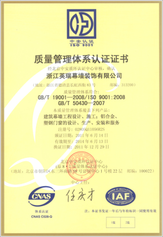 公司建立了嚴(yán)格的質(zhì)量管理體系,通過了ISO9001:2000質(zhì)量體系認(rèn)證,并嚴(yán)格按體系運(yùn)營,確保公司從設(shè)計(jì)研發(fā)、產(chǎn)品生產(chǎn)、獨(dú)立檢驗(yàn)、施工安裝到項(xiàng)目管理實(shí)施全程標(biāo)準(zhǔn)規(guī)范控制。
